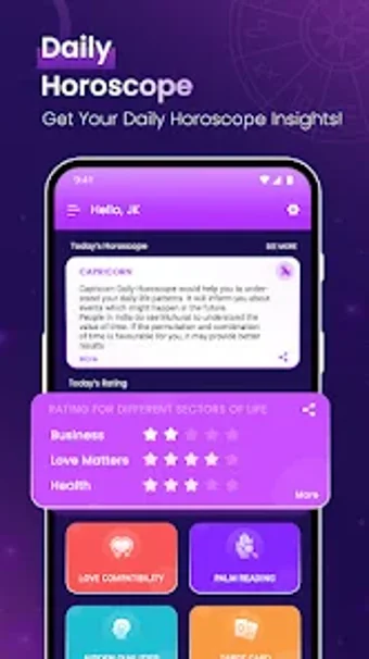 Ежедневный гороскоп и астрология - бесплатное приложение для образа жизни, разработанное Music Media App, доступное на Android 13.0 и выше. Это приложение предоставляет пользователям персонализированные гороскопы, совместимость знаков зодиака, анализ гороскопа рождения и предсказания пальмистики. Это источник ежедневных, еженедельных, ежемесячных и ежегодных гороскопов.